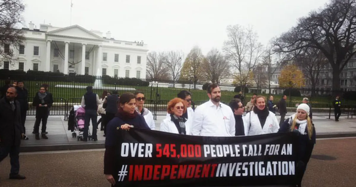 Bei den Luftangriffen am 3. Oktober wurden mindestens 30 Menschen getötet, darunter 14 Mitarbeiter von Ärzte ohne Grenzen; das Krankenhaus von Ärzte ohne Grenzen wurde zerstört. Die Petition fordert US-Präsident Barack Obama auf, einer Untersuchung durch die Internationale Humanitäre Ermittlungskommission (IHFFC) zuzustimmen. Dabei handelt es sich um die einzige Instanz, die speziell zur Untersuchung möglicher Verletzungen des humanitären Völkerrechts gemäß den Genfer Konventionen geschaffen wurde.