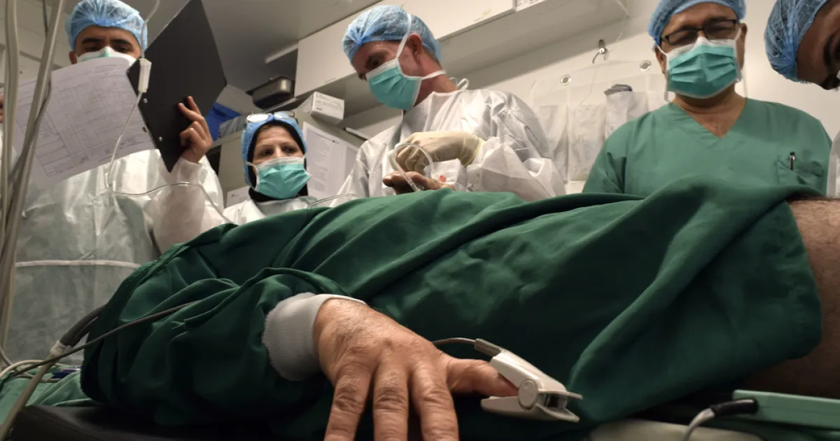 Saad (the name of the patient has been changed), 46 years old, in the operating theatre of MSF’s comprehensive post-operative care facility in East Mosul, is about to undergo his fourth surgical intervention. Saad was severely injured when a bomb blasted in his neighbourhood in 2017. He was walking towards his car to go to work. “It was an incredibly hot and gloomy morning, like many other days. But suddenly an explosion knocked me down, and I fell unconscious” remembers Saad. He survived the explosion but his tibia and fibula were fractured. “The first surgery I had was the insertion of an internal fixation into my leg, to enable me to walk again. But the recovery was excruciating and presented complications” he explains. A biopsy at the MSF facility showed that Saad had developed a multidrug-resistant infection and that his internal fixation had to be removed and replaced by an external one. After the surgery, Saad will stay in an isolation room for six weeks, taking specific antibiotics to fight his multidrug resistance infection.