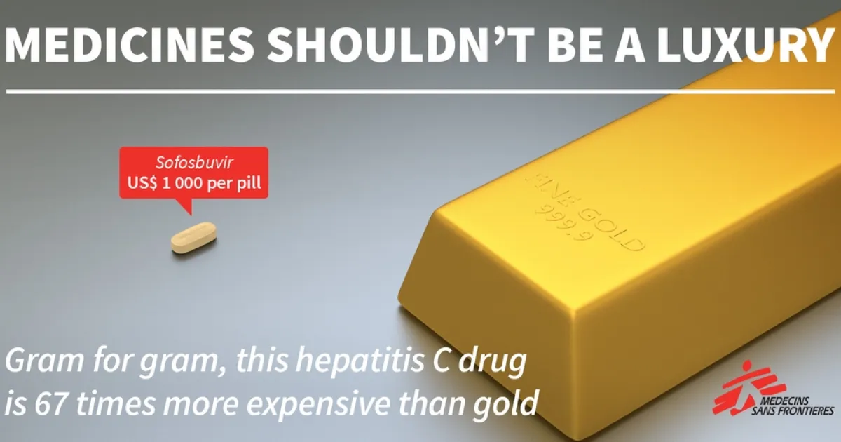 Sofosbuvir ist der wichtigste Bestandteil der meisten Hepatitis-C-Kombinations­behandlungen und hat die Heilungsraten massiv verbessert. In Europa verlangt Gilead für eine zwölf-wöchige Behandlung mit Sofosbuvir bis zu 55.000 Euro. In den USA kostete die Behandlung anfänglich 84.000 US-Dollar, also 1.000 US-Dollar pro Pille. Studien belegen inzwischen, dass sich die Herstellungskosten auf einen US-Dollar pro Pille belaufen.