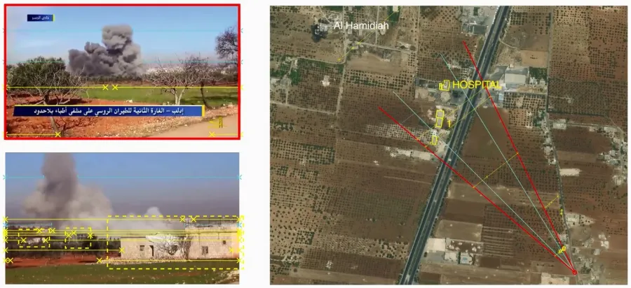 Das Team von Forensic Architecture hat den Fall anhand von Videos und Fotos untersucht, die von medizinischem Personal, Aktivisten und Zivilisten gemacht wurden und in den sozialen Medien zirkulierten. Diese wurden auf ihre Echtheit geprüft und ausgewertet, um den Angriff zu rekonstruieren. Die Untersuchung liefert zwar keine förmlichen Beweise, belegt aber die Verantwortlichkeit der syrischen und russischen Streitkräfte für den Bombenangriff auf das Spital in Maarat al-Numan und somit die erste Einschätzung von Ärzte ohne Grenzen.