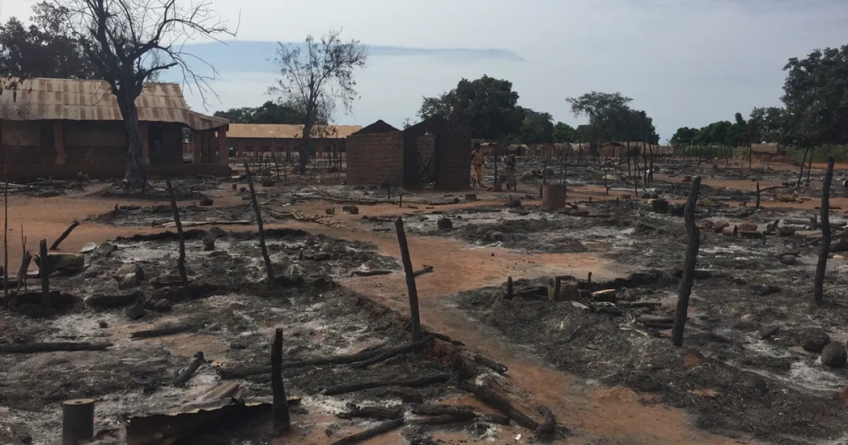 The remains of the village after the clash on Batangafo, which led to the displacement of more than 10,000 people into the hospital.