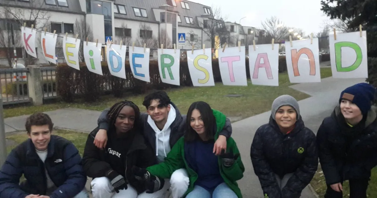 Schüler:innen des Polgargymnasiums beim Kleiderkreisel.